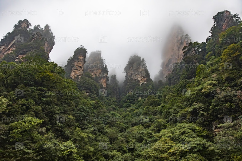 Туманные скальные столбы в горах Чжанцзяцзе, Китай