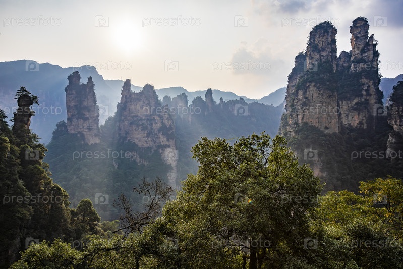 Туманные скальные столбы в горах Чжанцзяцзе, Китай