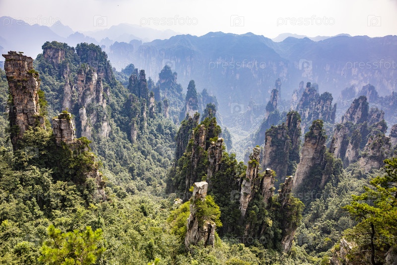 Скальные столбы и ущелье в национальном парке Чжанцзяцзе, Китай