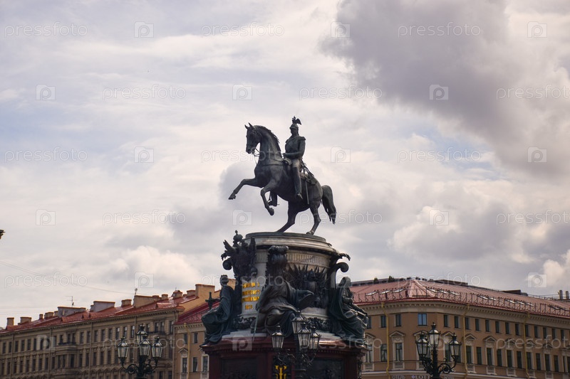 Силуэт конного памятника Николаю I на фоне облачного неба в Санкт-Петербурге