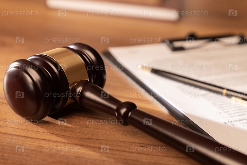 Молоток судьи и документы на столе