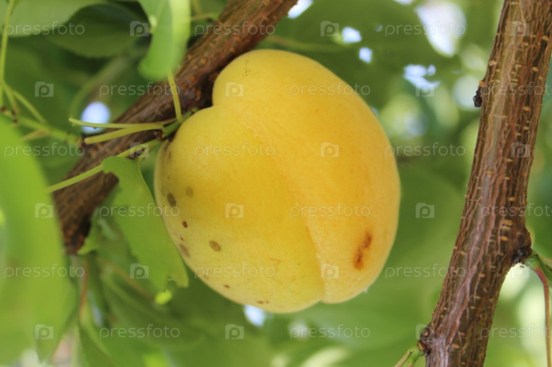 Спелая абрикоса висит на ветке перед уборкой урожая