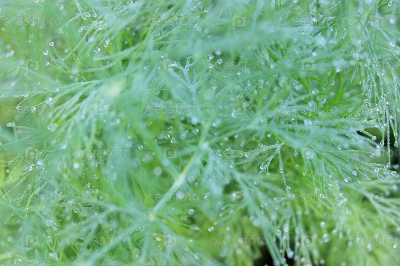 Ветки укропа с каплями росы на заре