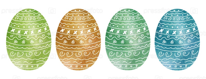 Праздничный набор пасхальных яиц.Яйца, окрашенные акварелью и декоративными узорами
