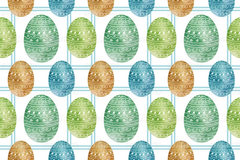 Бесшовный акварельный рисунок праздничных окрашенных яиц на квадратном фоне для пасхальных торжеств