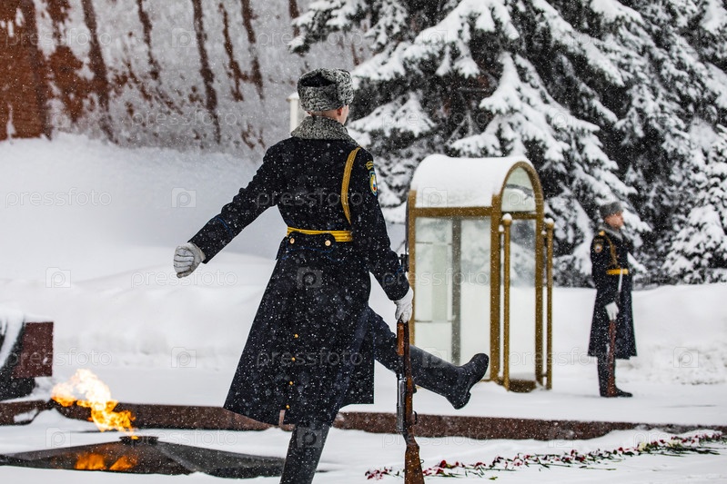 Смена караула на Могиле Неизвестного Солдата во время снегопада, Москва