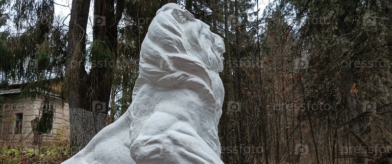 Скульптура льва в лесу