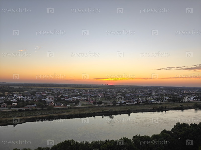 Прекрасный оранжевый закат над рекой