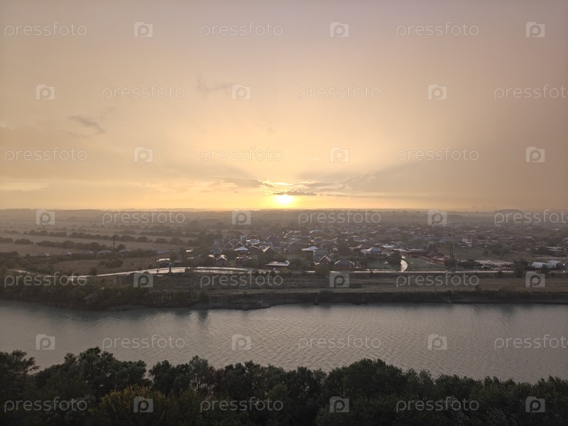 Прекрасный оранжевый закат над рекой