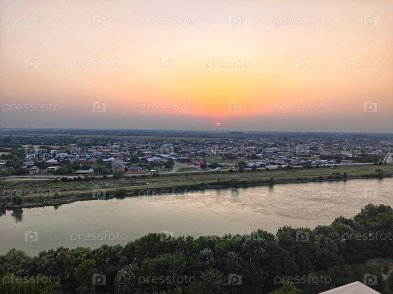 Прекрасный оранжевый закат над рекой
