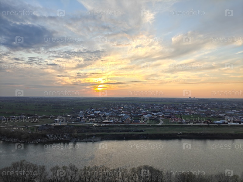 Прекрасный оранжевый закат над рекой