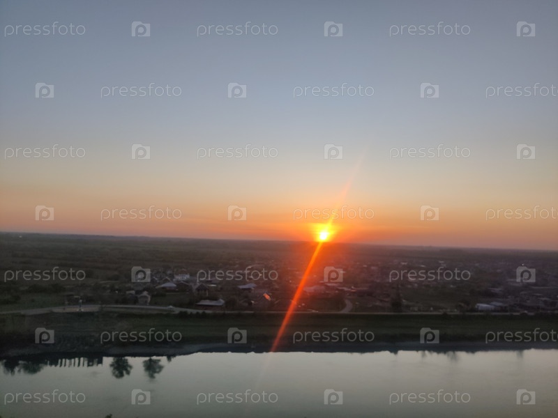 Прекрасный оранжевый закат над рекой
