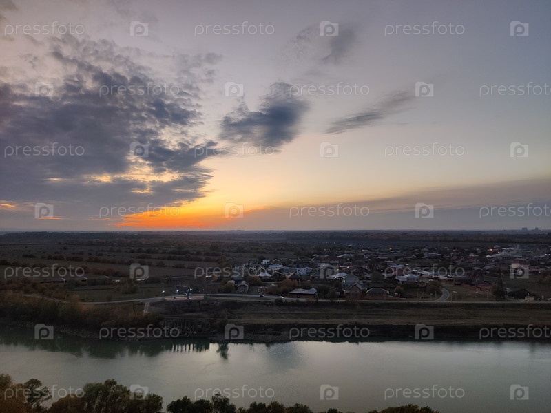 Прекрасный оранжевый закат над рекой