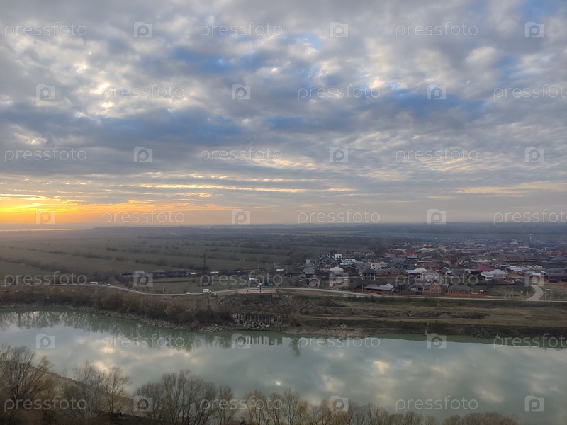 Прекрасный оранжевый закат над рекой