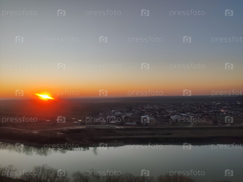 Прекрасный оранжевый закат над рекой