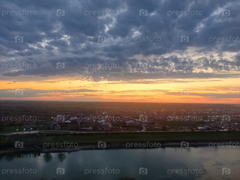 Прекрасный оранжевый закат над рекой