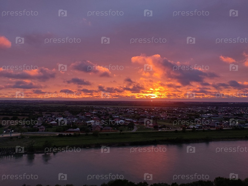 Прекрасный оранжевый закат над рекой