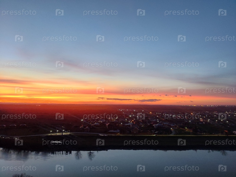 Прекрасный оранжевый закат над рекой