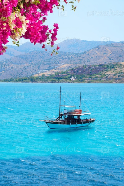 Ландшафт Элунда с лодкой, Крит, Греция