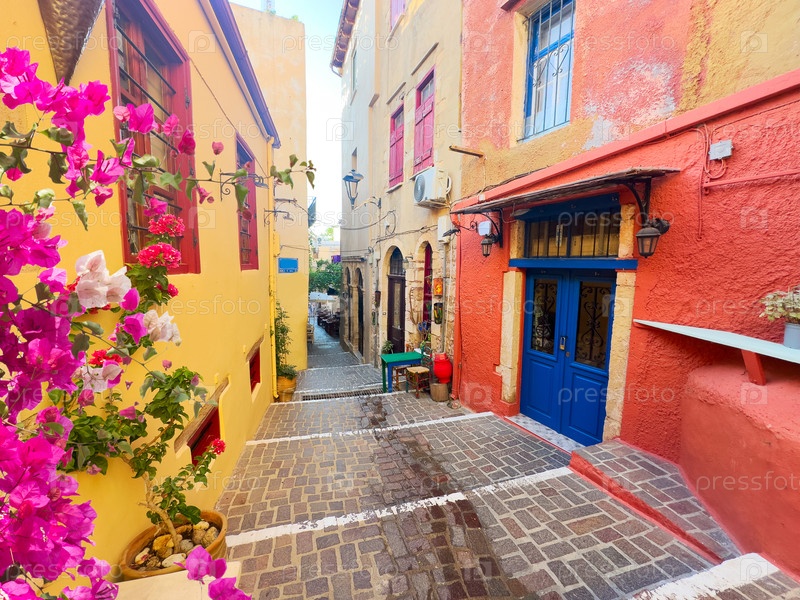 Уютная улица старого города Хании, Крит, Греция, ретро-тон