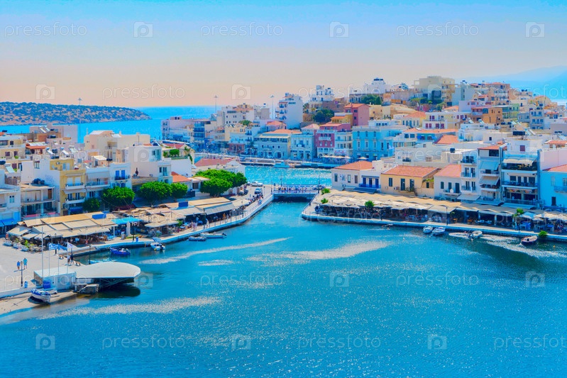 Озеро в гавани Агиос-Николаоса, Крит, Греция ретро тонированное