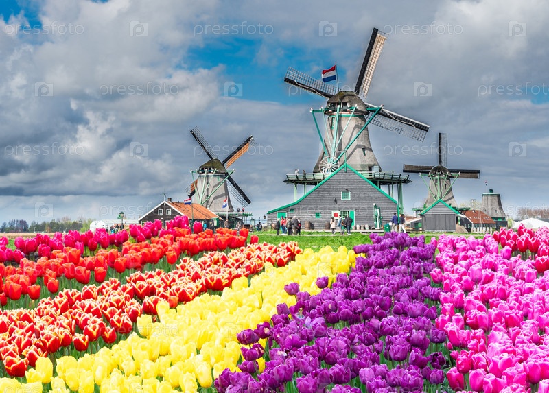Голландская ветряная мельница над тюльпанами one