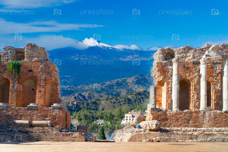Таормина древний знаменитый амфитеатр, Сицилия Италия