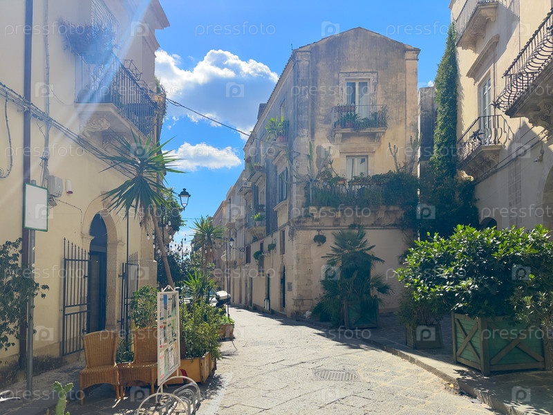 Сиракузская старая средневековая городская улица, Сицилия Италия