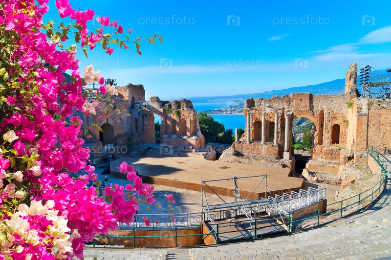 Таормина древний знаменитый амфитеатр, Сицилия Италия