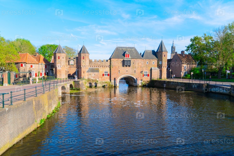 Коппельпорт средневековые ворота над водой канала, Амерсфорт, Нидерланды