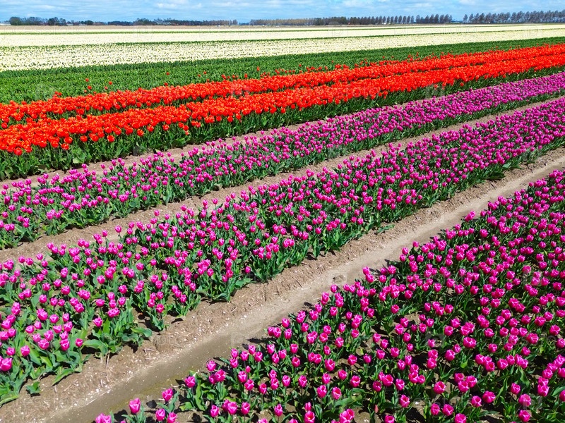 Голландские желтые поля тюльпанов в солнечный день