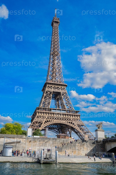 Эйфелева башня и берег Сены в летний день, Париж, Франция