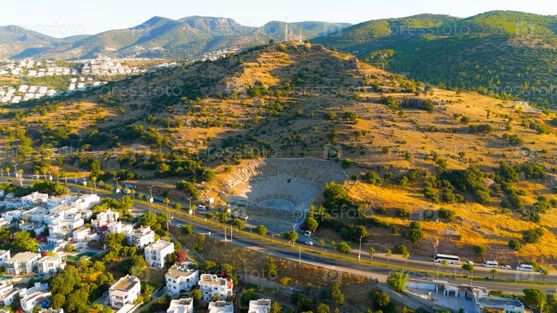 Сценический вид Бодрумского древнего театра, исторического места проведения летних концертов и фестивалей, таких как Международный балетный фестиваль в Бодруме