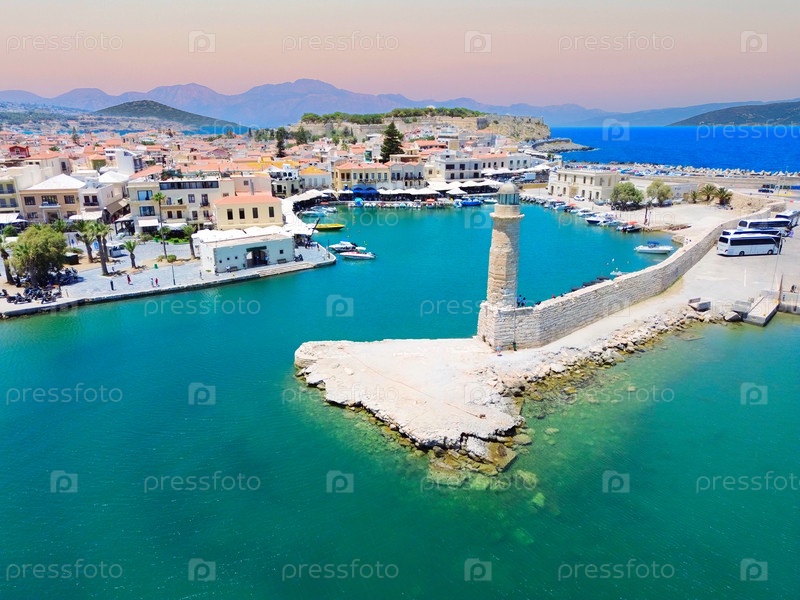 Гавань и маяк старого города Ретимно, Крит, Греция, ретро-тон