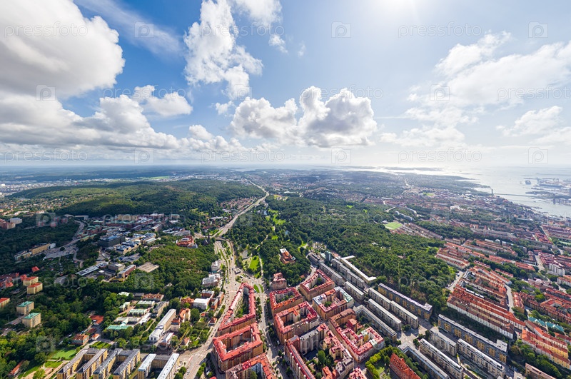 Гетеборг, Швеция Панорама города летом в пасмурную погоду