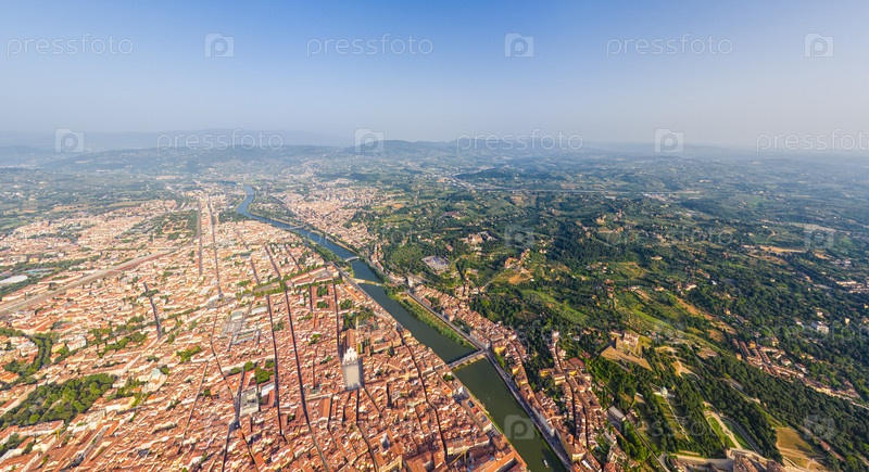 Флоренция, Италия Общий вид города в солнечный день Река Арно Вид с воздуха