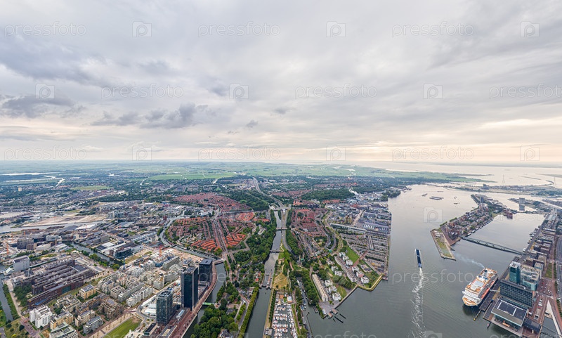Амстердам, Нидерланды Панорама города летом утром в пасмурную погоду