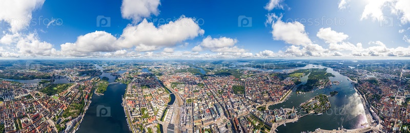 Стокгольм, Швеция.Панорама города летом в пасмурную погоду.Панорама 360.Вид с воздуха