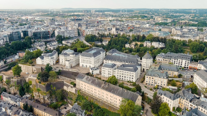 Панорамный вид на историческую часть города Люксембург.Город расположен в глубокой долине двух рек - Альзетте и Петруса, Aerial View