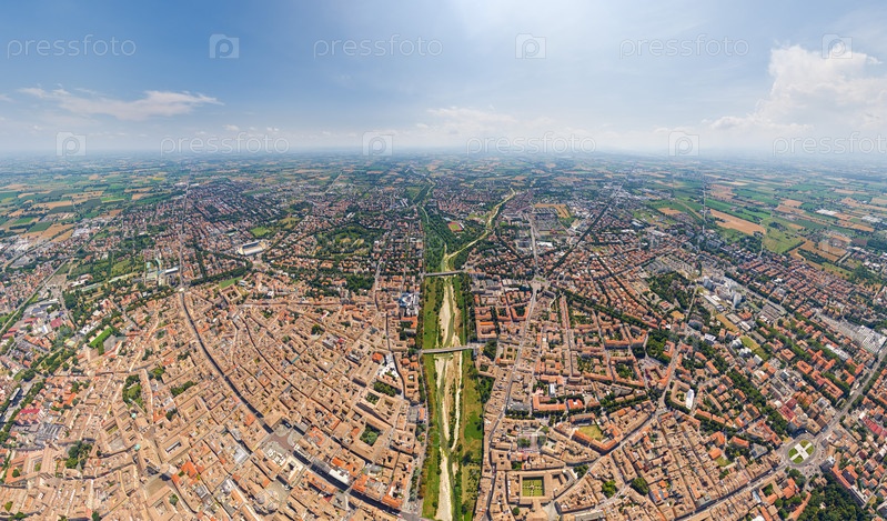 Парма, Италия Исторический центр Панорама города в летний день Солнечная погода Вид с воздуха