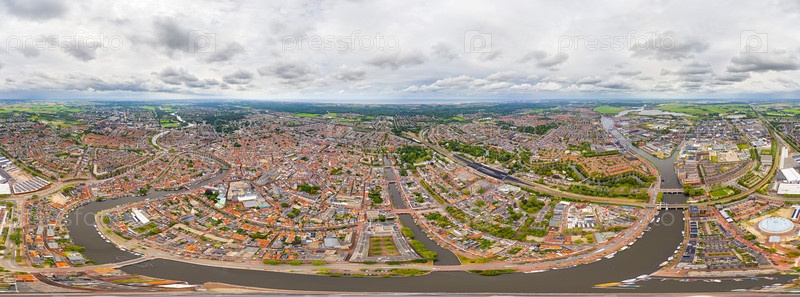 Гаарлем, Нидерланды.Панорама города летом в пасмурную погоду. Панорама 360