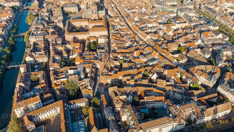 Страсбург, Франция. Панорамный вид. Крыши домов. Летнее утро, Aerial View