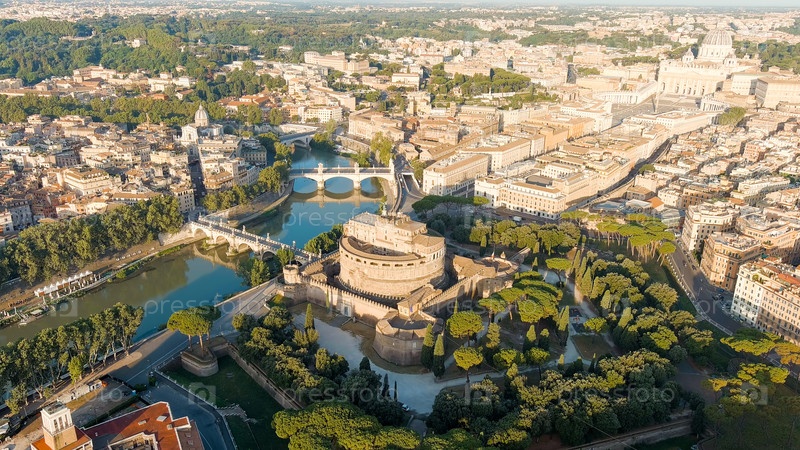 Рим, Италия. река Тибр. замок Сант-Анджело. утренние часы, взгляд с воздуха