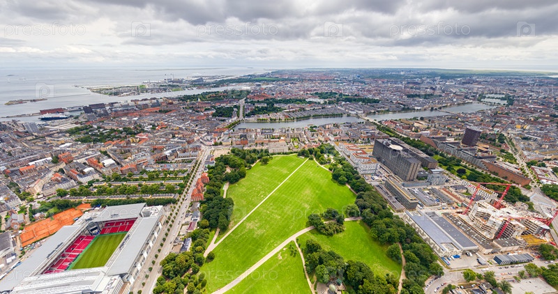 Копенгаген, Дания Панорама города летом Облачная погода Вид с воздуха