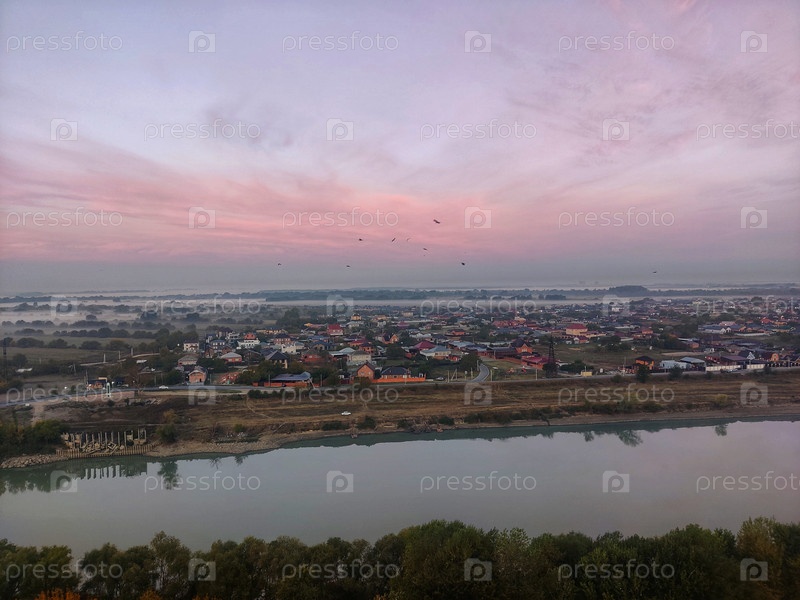 Прекрасный оранжевый закат над рекой
