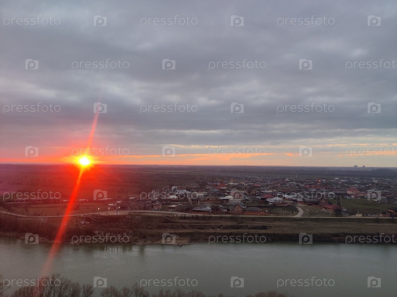 Прекрасный оранжевый закат над рекой