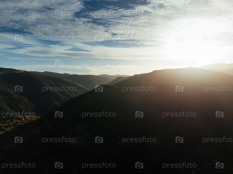 Вид с воздуха на горы Тара в Сербии с осенним лесом, сельской долиной и утренним туманом