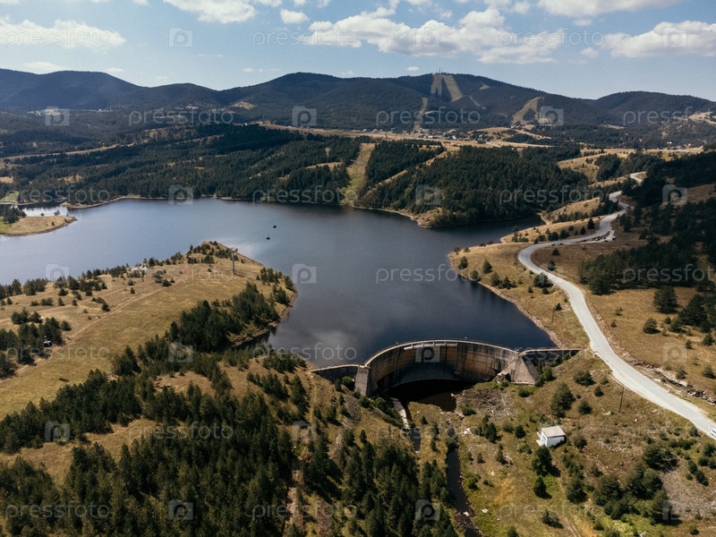 Вид с воздуха горы, озера, лыжного лифта и курорта, Златибор, Сербия, Европа