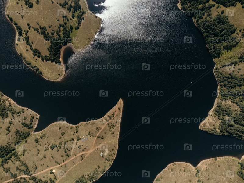 Вид с воздуха горы, озера, лыжного лифта и курорта, Златибор, Сербия, Европа