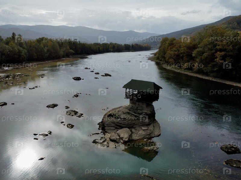 Знаменитый дом посреди реки в регионе Тара, Сербия, Европа